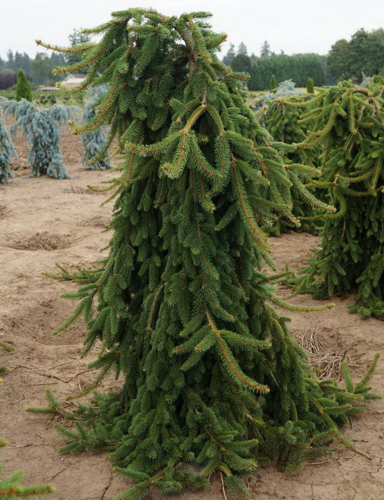 Кроме знаменитой 'Глаука Пендула', мы предлагаем редкие и эффектные сорта елей — для ландшафта, который не останется незамеченным.