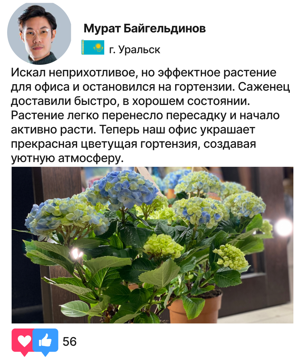 Неприхотливость (наши гортензии не требуют особого внимания от цветоводов и отлично подходят для начинающих любителей комнатных растений)